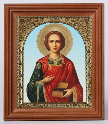Икона в деревянной рамке 11х13 конгрев (без стекла), упаковка Пантелеимон