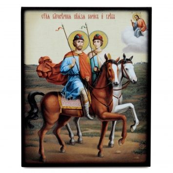 Икона на доске 13х15 объёмная печать, лак Борис и Глеб,