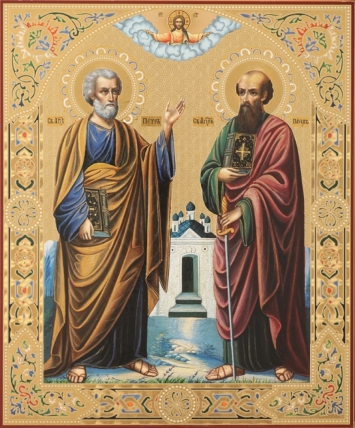 Икона на деревянном планшете 30х40 двойное тиснение, ДСП, ПВХ Петр Павел 3
