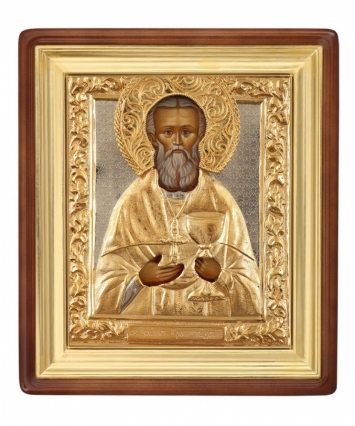Икона живописная в киоте 11х13 масло, риза №45, киот №1 Иоанн Кронштадтский