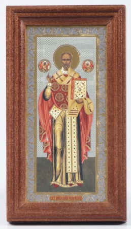 Икона в деревянной рамке №1 7 х14 двойное тиснение Николай Чудотворец (ростовой)