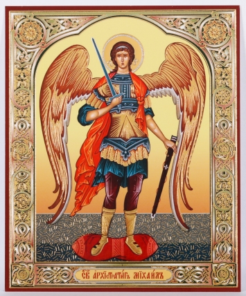 Икона на доске 22х26 объёмная печать, лак Михаил Архангел