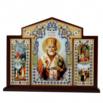 Иконостас домашний 30х40 см с Избранными Святыми на подставке №3 Николай Чудотворец
