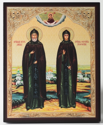 Икона на доске 22х26 объёмная печать, лак Петр и Феврония 4
