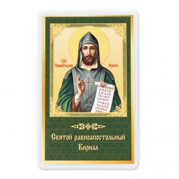 Икона в жесткой ламинации 5х8 с оборотом Кирилл