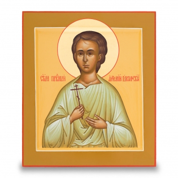 Икона живописная на доске 13х15 масло, золоченый нимб Артемий