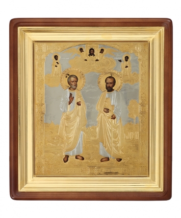 Икона живописная в киоте 24х30 масло, риза №235, киот №1 Петр Павел