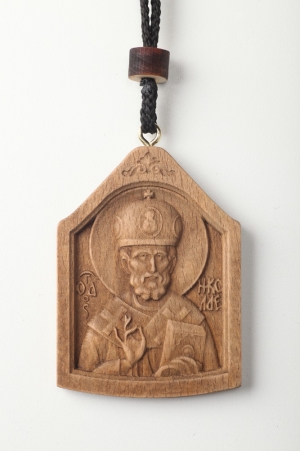 Икона деревянная в автомобиль на подвеске Николай Чудотворец