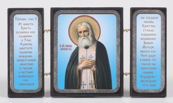 Складни деревянные 7х12 трехстворчатые, двойное тиснение Серафим Саровский