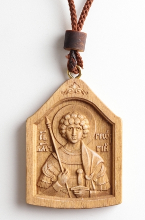 Икона деревянная в автомобиль на подвеске Георгий Победоносец