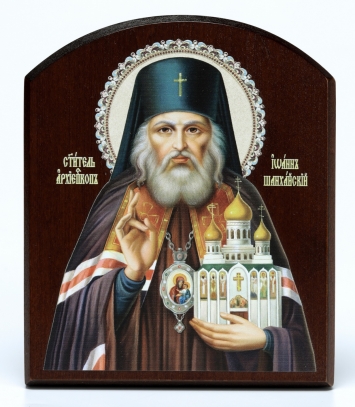 Икона на доске 10х12 объёмная печать, арочная, лак Иоанн Шанхайский,