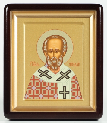 Икона в деревянной рамке №1 11х13 двойное тиснение Николай Чудотворец 19