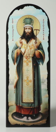 Икона на МДФ 18х50 арочная, объёмная печать, лак Димитрий Ростовский