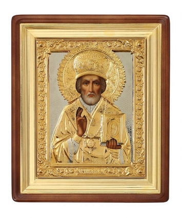 Икона настольная №146 серебро деколь, гравировка в деревянной рамке Николай Чудотворец (УИН)