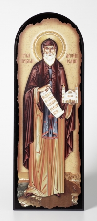 Икона на МДФ 18х50 арочная, объёмная печать, лак Антоний Великий