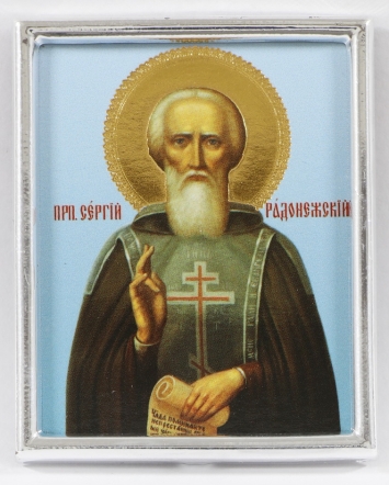 Икона в пластмассовой рамке 4х5 металлизированная Сергий Радонежский