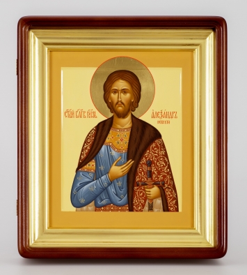 Икона живописная на доске в киоте 24х30 темпера, золоченый нимб, ковчег, киот №1 Александр Невский 1