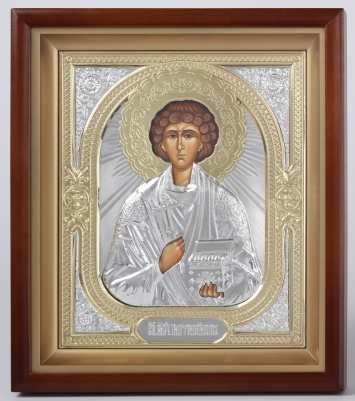 Икона в киоте 18х24 сложный, фото, риза объёмная №1 Пантелеимон