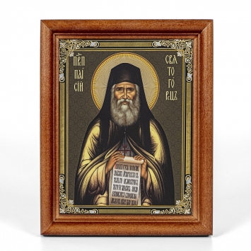 Икона в деревянной рамке №1 11х13 двойное тиснение Паисий Святогорец 2