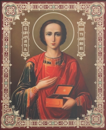 Икона на оргалите №1 30х40 двойное тиснение Пантелеимон 4