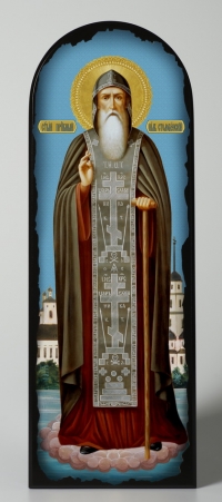 Икона на МДФ 18х50 арочная, объёмная печать, лак Нил Столобенский 3