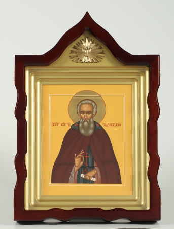 Икона в киоте 18х24 фигурный, темпера, рамка золочёная Сергий Радонежский