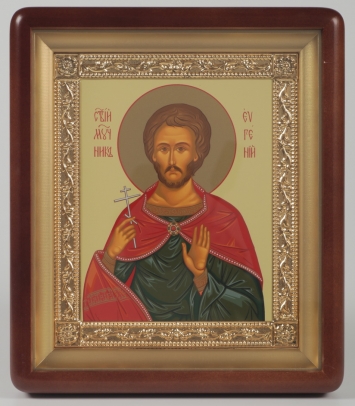 Икона в киоте 18х24 фигурный, темпера, рамка золочёная Евгений
