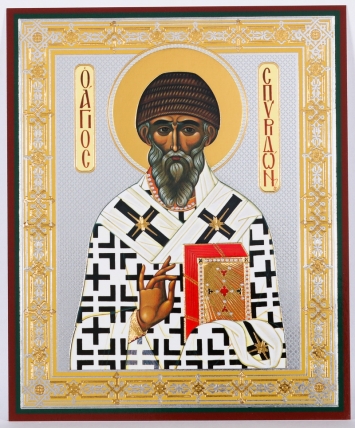 Икона на доске 10х12 объёмная печать, арочная, лак Спиридон Тримифунтский 2