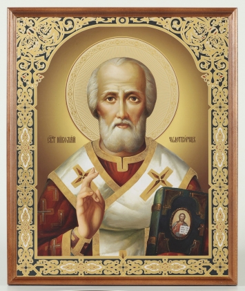 Икона на доске 22х26 объёмная печать, лак Николай Чудотворец иконописный №1