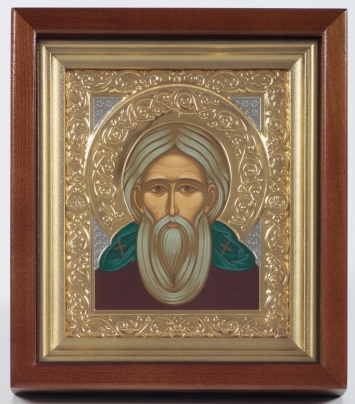 Икона фото в киоте 24х30 риза №191 золочёная, багетный подрамник Сергий Радонежский