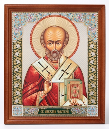 Икона в деревянной рамке №1 18х24 двойное тиснение Николай Чудотворец 29