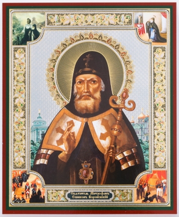 Икона на деревянном планшете 11х13 двойное тиснение Митрофан Воронежский
