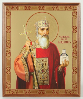 Икона в деревянной рамке №1 30х40 двойное тиснение, упаковка Владимир, равн. князь Киевский 5