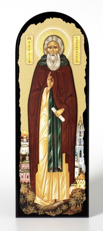 Икона на МДФ 18х50 арочная, объёмная печать, лак Сергий Радонежский 3