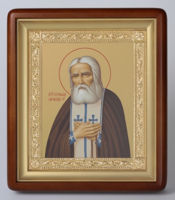 Икона в деревянной рамке №1 18х24 двойное тиснение Серафим Саровский с БМ