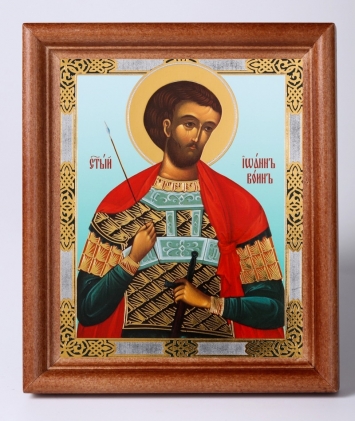 Икона в деревянной рамке №1 11х13 двойное тиснение Иоанн Воин 2