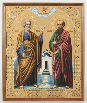 Икона в деревянной рамке №1 30х40 двойное тиснение, упаковка Петр Павел 3