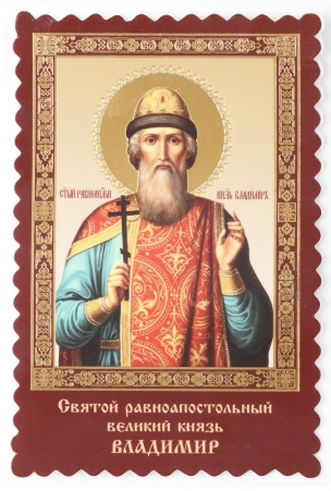 Икона в жесткой ламинации 8х11 с оборотом, тиснение, высечка Владимир, равн. князь Киевский