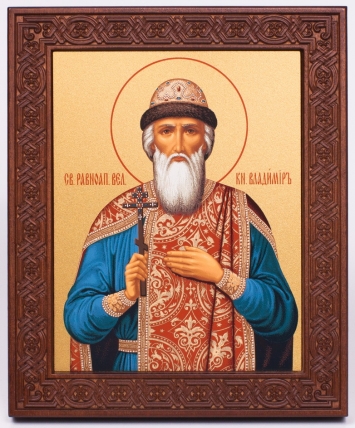 Икона на дереве 18х22 прокат, ковчег с резным обрамлением, упаковка Владимир равн. князь Киевск. 1