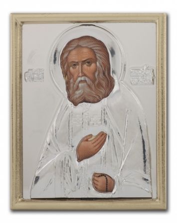 Икона в пластмассовой рамке 4х5 металлизированная риза Серафим Саровский