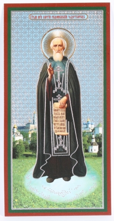 Икона на деревянном планшете 7х14 двойное тиснение Сергий Радонежский 5