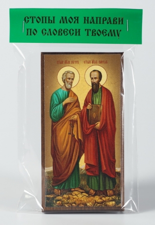Икона на дереве 6х12 канвас, упаковка, ярлык Петр Павел