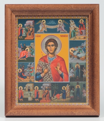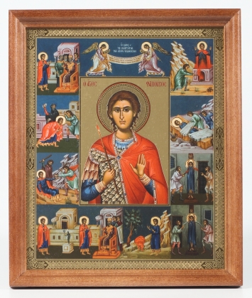 Икона в киоте 18х24 фигурный, темпера, риза-рамка №1 Пантелеимон