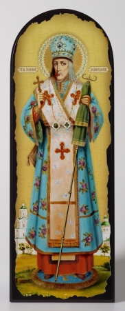 Икона на МДФ 18х50 арочная, объёмная печать, лак Николай Чудотворец 2