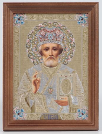 Икона в киоте 18х24 фигурный, фото, риза объёмная №1 Николай Чудотворец