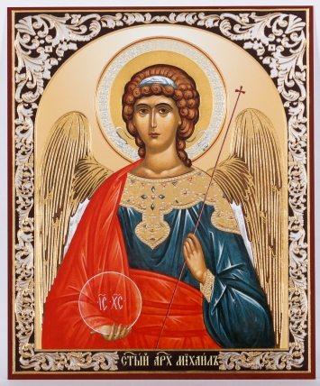 Икона на деревянном планшете 11х13 двойное тиснение Михаил Архангел (поясной) 2