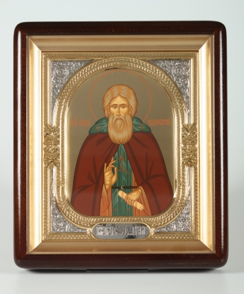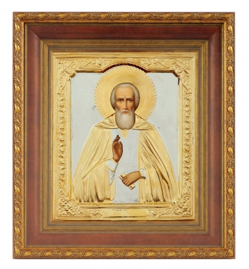 Икона в деревянной рамке №1 30х40 двойное тиснение, упаковка Сергий Радонежский