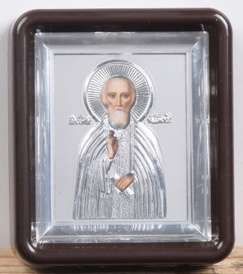 Икона в пластмассовой рамке 6х7 металлизированная риза Сергий Радонежский (поясной)