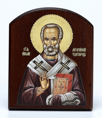 Икона на доске 10х12 объёмная печать, арочная, лак Николай Чудотворец 4