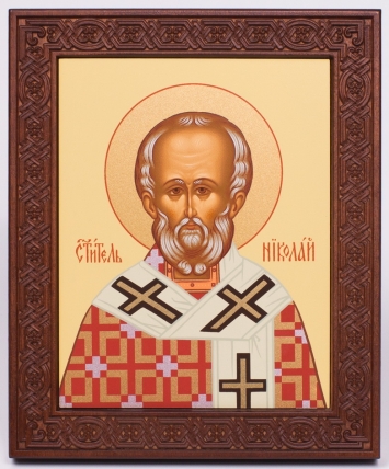 Икона на дереве 18х22 прокат, ковчег с резным обрамлением, упаковка Николай Чудотворец